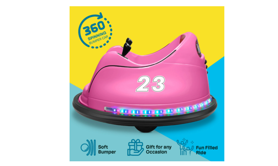 Cette toute nouvelle voiture électrique Kidzone, entièrement rechargeable, est un jouet amusant à conduire. Elle peut pivoter à 360° grâce à ses commandes par joystick simples.
