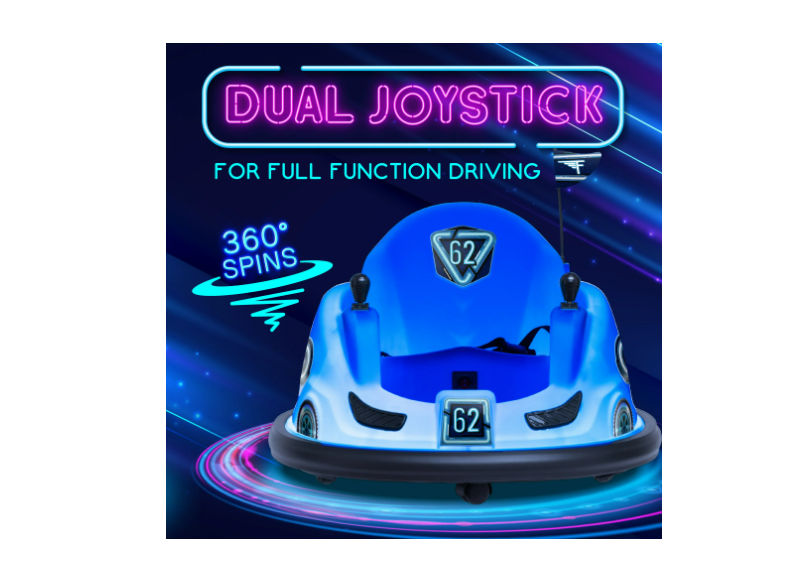La voiture pivote à 360 degrés et offre un divertissement passionnant sans écran. Votre enfant rira et sourira en la faisant tourner et s’amuser. Commandes à double joystick : Deux joysticks faciles à utiliser pour faire pivoter à 360 degrés et diriger la voiturette auto-tamponneuse pour bébé