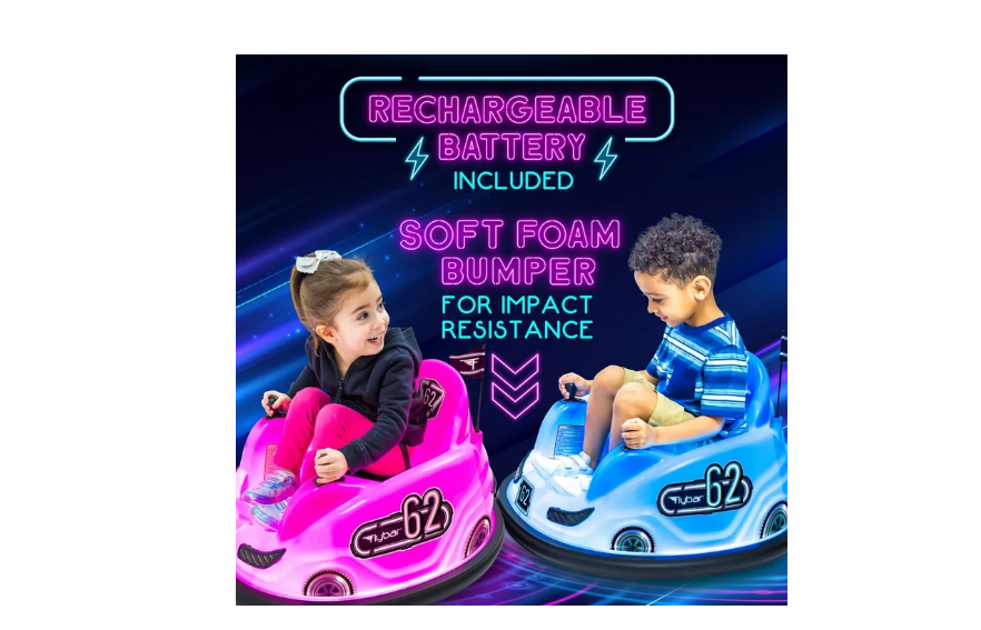 Les voitures tamponneuses Flybar sont dotées d’un pare-chocs en caoutchouc souple qui protège les murs et les meubles. Une ceinture de sécurité réglable maintient les plus petits en place. La coque en plastique est résistante et dotée de roues increvables. Elle est suffisamment robuste pour supporter les jeux les plus énergiques. La voiture tamponneuse Flybar est livrée entièrement assemblée. Il suffit de fixer le pare-chocs, de charger/brancher la batterie et c’est parti !
