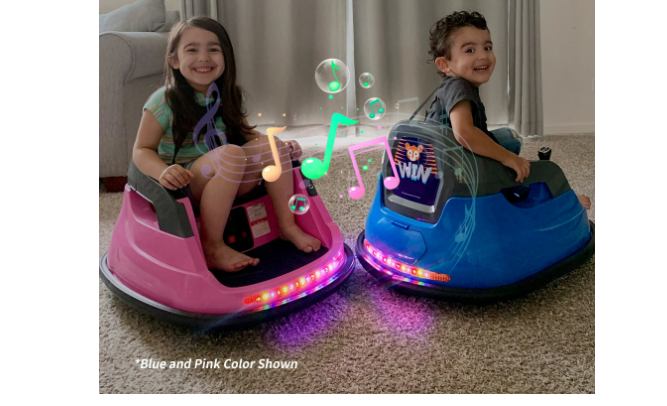 Voiture Auto tamponneuse OUTFUNNY 12V pour enfants rose avec télécommande et musique, jouet à chevaucher pour tout-petits