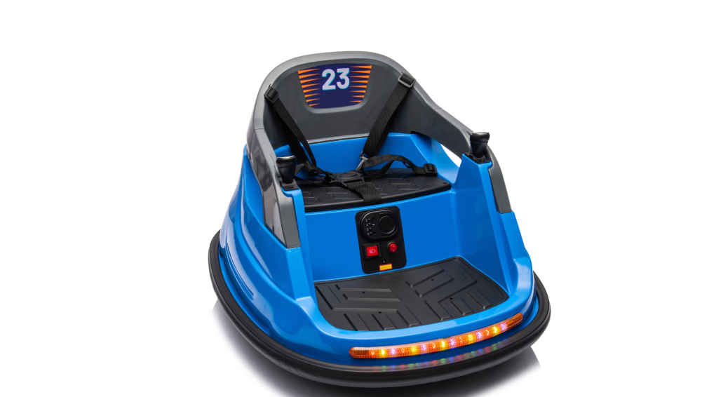 Notre auto-tamponneuse est équipée d’une télécommande pour jouer en toute sécurité. Cette auto-tamponneuse électrique 12V pour tout-petits effectue des rotations à 360°. Sa carrosserie est équipée de mousse anti-collision et d’un harnais de sécurité 5 points pour maintenir vos enfants en place et protéger les murs et les meubles. L’auto-tamponneuse Outfunny est dotée d’une batterie rechargeable toujours prête pour la course, les poursuites, les virages et les collisions. Les lumières LED avant et arrière clignotent au rythme de la musique, même la nuit. Diffusez les chansons préférées de vos enfants via l’entrée USB ou la musique intégrée pour des heures de divertissement.