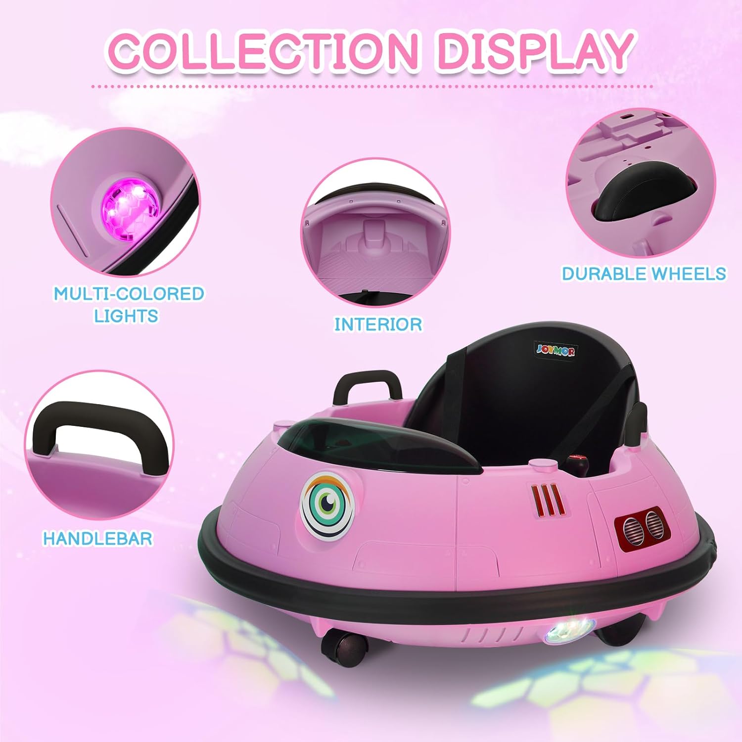 Cette voiture électrique JOYMOR 12 V pour enfants avec télécommande à pare-chocs est l’idéal cadeau. Elle a une batterie rechargeable et puissante de 12 V avec 2 moteurs puissants. Elle peut facilement tourner à 360 degrés avec son simple joystick ou ses télécommandes. La vitesse peut atteindre 1,25 MPH. Vos enfants vivront une expérience plus amusante avec les autos tamponneuses.
